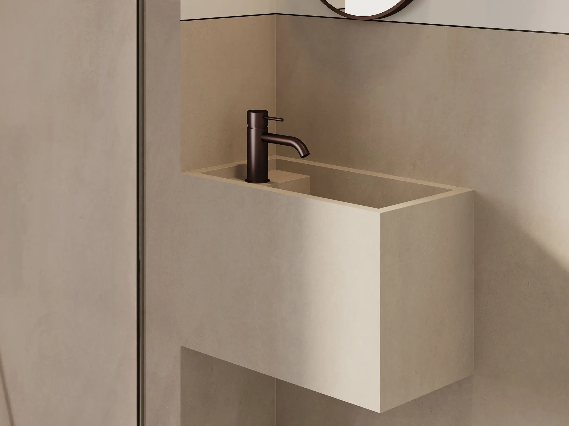 Ook uw toiletruimte kan u aankleden met een handenwasser afgewerkt in microcement. Onze Nova handenwasser is verkrijgbaar in 2 afmetingen en vrijhangend of in combinatie met onderkast.